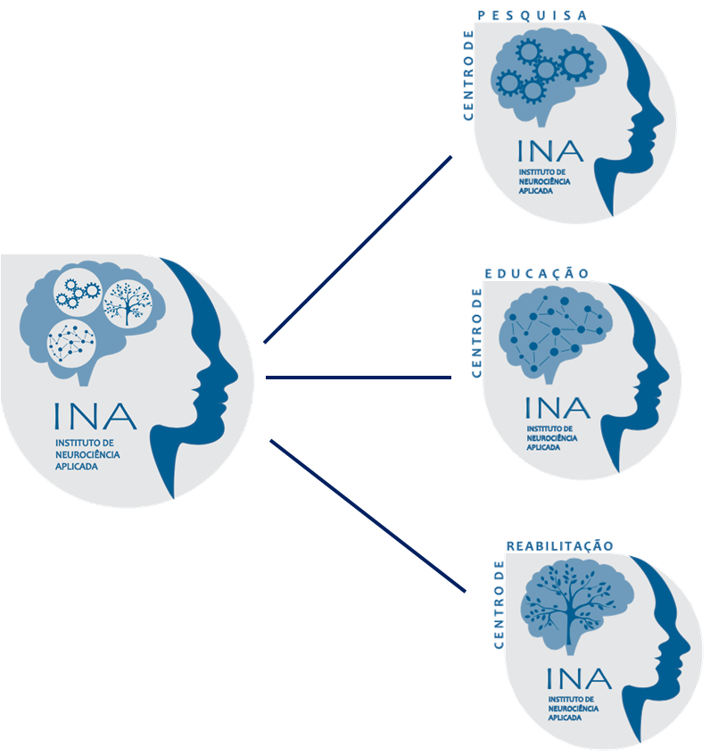 Diante de sua missão, o INA atua em três eixos estratégicos, desde produção do conhecimento (Centro de pesquisa), formação qualificada de recursos humanos (Centro de educação)e na translação do conhecimento de neurociência para fornecimento de serviços e recursos de saúde de maior efetividade (Centro de Reabilitação).
